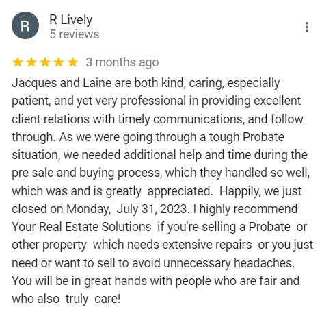 Whether you want top dollar and have some time, or you want a fair offer for speed and convenience, Your Real Estate Solutions has you covered.